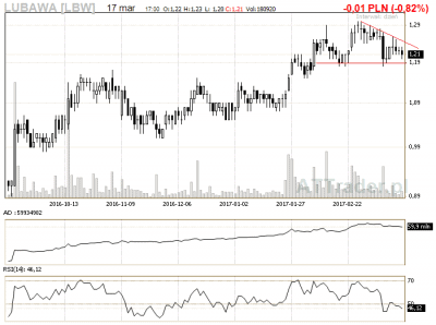 10. Lubawa – na wykresie znajduje się trójkąt i będziemy zagrywać na wybicie z niego, LimAkt 1,25 zł