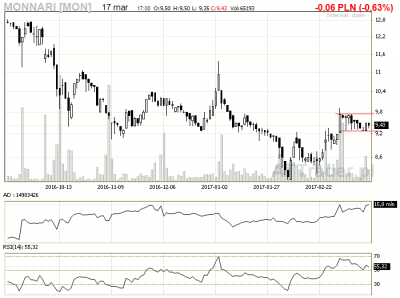 13. Monnari – spółka znajduje się w obszarze konsolidacji, zagrywamy na wybicie z niej, LimAkt 9,76 zł