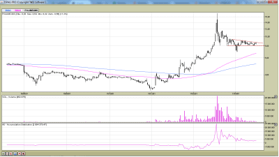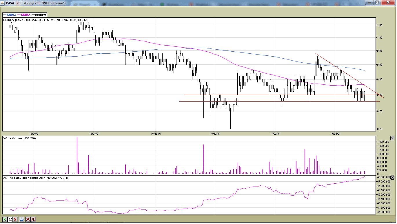 3. Bbidev – na wykresie widać dalszą akumulację na wsparciu, wskaźnik AD rośnie prawie pionowo co może wskazywać na przyszłe przebicie linii korekty.