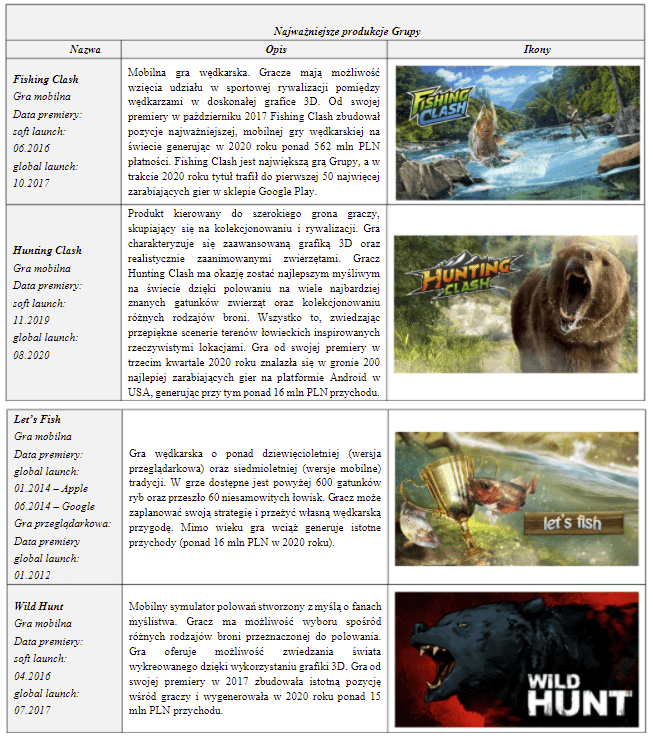 Jak na wstępie wspomniałem “flagową” grą spółki jest Fishing Clash, poza nią nieznaczny udział w dotychczasowych przychodach miały jeszcze: