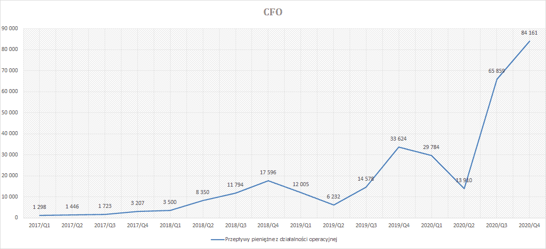 Ten Square Games sukcesywnie zwiększa przychody i zyski, ale szczególnie warto zwrócić uwagę na posiadaną przez spółkę na koncie gotówkę – 236 mln złotych. Spółka jest swoistego rodzaju maszynką do generowania cashu z działalności operacyjnej: