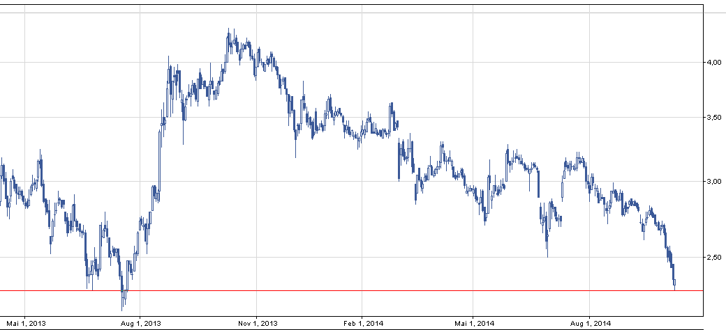 Może to w końcu przełomowa chwila dla pechowców, którzy siedzą z walorem od długiego czasu. Jeżeli dzisiejsza świeczka miałabyć młotem, a jutro dojdzie po 6 spadkowych sesjach do wzrostu, to jesteśmy na dobrej drodze. W innym przypadku doszukujemy się wsparcia na 2,2 zł, który jest zeszłorocznym minimum.