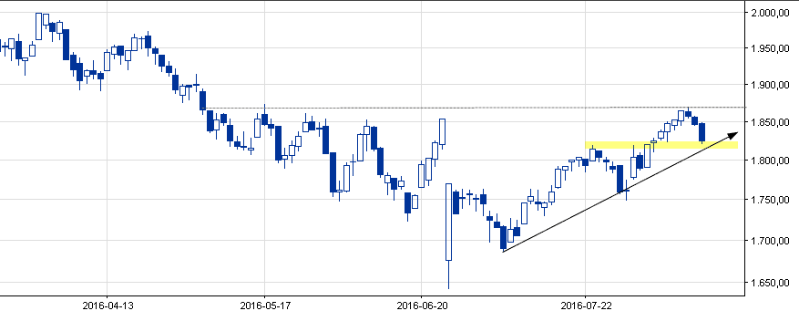 Przełamanie 1800 pkt może ruszyć kursem do luki przy ~1750 pkt.