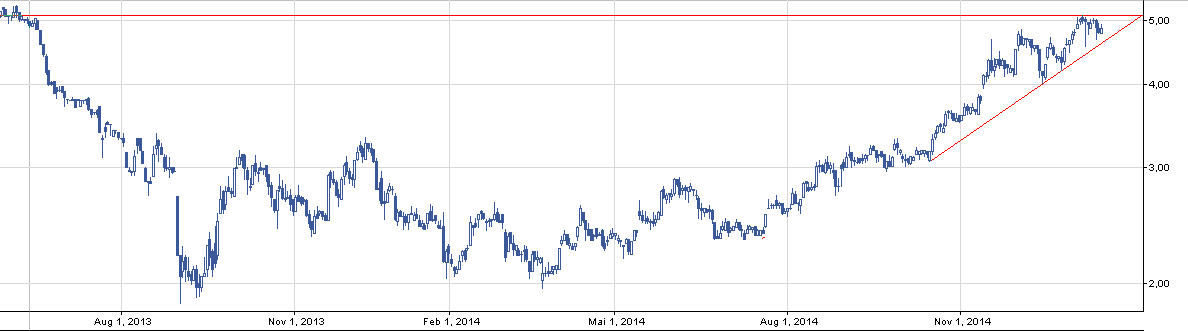 Podobną systuację jak na Livechat przed wybiciem z trójkąta mamy również na VIVID. Chyba ktoś wspominał w komentarzach o wsparciu na poziomie 4,75 – ładnie to widać na wykresie dziennym.