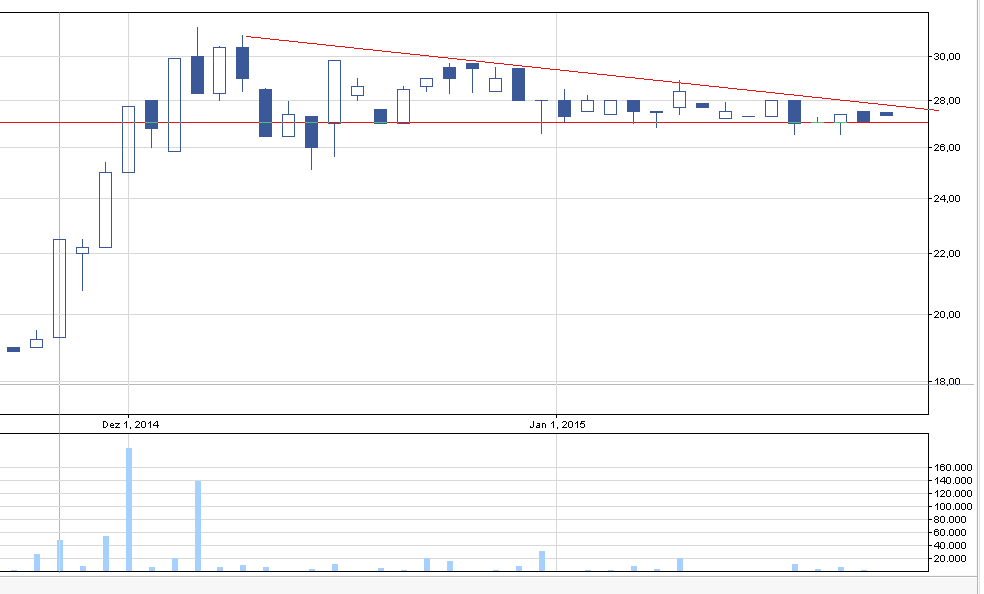Livechat również z wielką chęcią tworzy taki o to trójkąt. Czekamy na wybicie w górę, limakt ok. 28 zł.