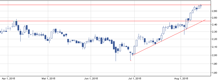 Podobnie jak Duon, spółka przeżywa obecnie swoją eksplozję wzrostową. Ostatnio dokonano domknięcia małej luki wzrostowej, co sugeruje, że akcjonariusze spółki mają ochotę na kontynuację wzrostów. Aby tego dokonać konieczne będzie jednoznaczne przebicie 2,7, gdzie utworzyła się prospadkowa świeca. Według analityków DM BOŚ spółka powoli wyczerpuje swój potencjał wzrostowy