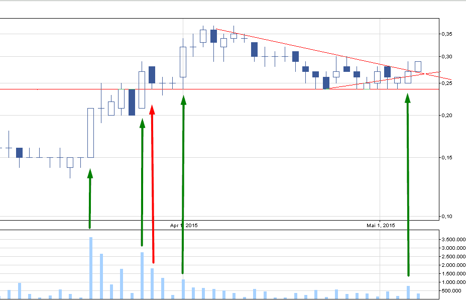 Biomaxa przedstawiać większości nie trzeba. Spółka analizowana pierwotnie w połowie lutego urosła z ok. 13 groszy do maksymalnie 36 w 2,5 miesiąca. Pisałem wtedy również, że spółka była dla mnie na tyle interesująca, że sam w nią zainwestowalem. Przez ostatni miesiąc kurs leciał w dół, co jednak nie powinno być wielkim zaskoczeniem, a raczej normalnym objawem realizacji sporych zysków. Niejedno wsparcie zostało wówczas przebite, ale istotne wsparcie na 24 gr zostało wybronione aż 6 razy! Jeżeli spojrzymy na wykres, to widzimy, że kurs korygował się na mniejszym wolumenie, natomiast podczas wzrostów dochodziło do wyższych obrotów.
