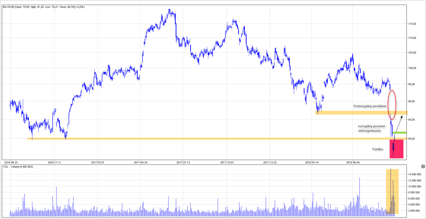 Duże turbulencje związane z przejęcia amerykańskiego Monsanto oraz ostatnia srogą karą nałożoną na producenta na rzecz jednej osoby fizycznej – nad największą niemiecką spółką chemiczną wiszą czarne chmury. Niemieckie media wrzą na temat złej przyszłości spółki, ale takie momenty nierzadko są podstawą do spekulacyjnego rozegrania.