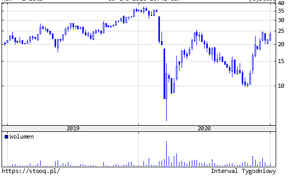 Ale nie tylko linie lotnicze straciły w tym roku, operatorzy turystyczni, tacy jak Rainbowtours (spadek od początku roku o ponad 30%), również stoją w obliczu ogromnych wyzwań. Wszystkie firmy z branży, w tym sieci hoteli, walczą obecnie o obniżenie kosztów w celu ratowania swojej działalności. Decydującym czynnikiem dla branży w przyszłości będzie to, jak będzie się rozwijać ilość zachorowań i kiedy będzie można stosować szczepionkę na masową skalę. Dopiero wtedy stanie się jasne, czy podróże zagraniczne wrócą do stabilności sprzed pandemii COVID-19. Poniżej przedstawiam wykresy spółek Enter Air oraz Rainbowtours.