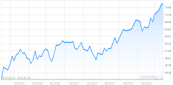 Ostatnio mocno ropa naftowa zwyżkuje, ponieważ Trump znowu “narozrabiał”, gdyż zerwał umowy z Iranem i zapowiedział nałożenie sankcji na ten kraj. Trzeba mieć na uwadze, że Iran jest trzecim największym producentem ropy naftowej w organizacji OPEC. Częściowo rynek już zdyskontował tą decyzję, dlatego wzrosty nie były zbyt gwałtowne. Ograniczenie ilości ropy na rynku przy dużym popycie może spowodować dalsze wzrosty cen surowca. Poniżej przestawiam wykres ropy naftowej.