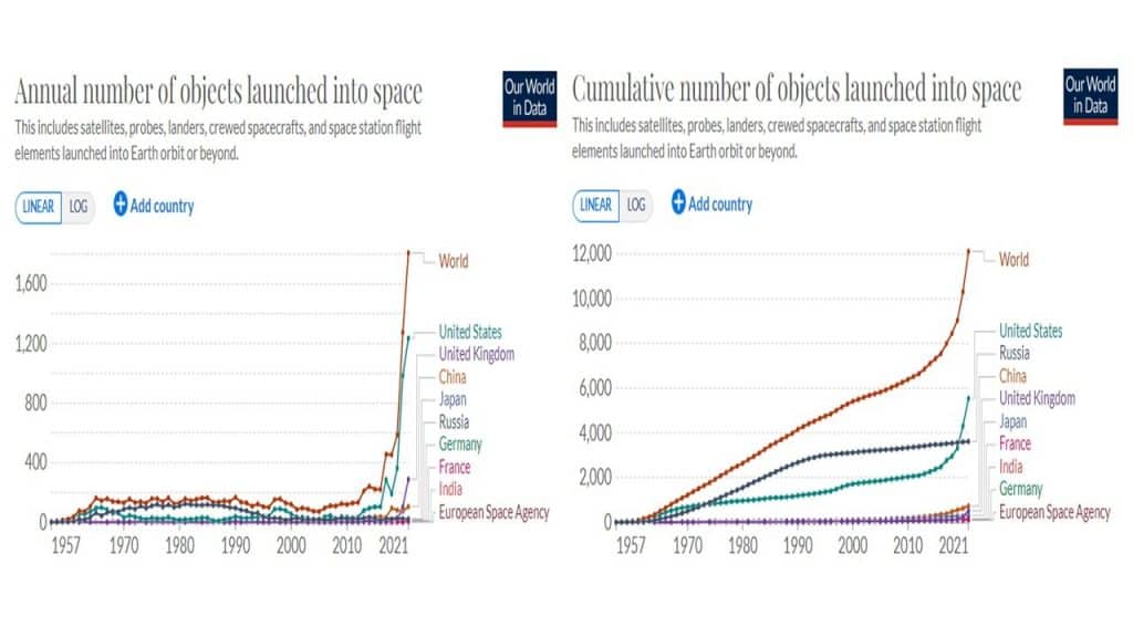 Jeszcze kilka lat temu wysyłano w kosmos przeciętnie kilkaset pojazdów kosmicznych, obecnie ta liczba zbliża się do 2 tys. Praktycznie każda nacja, mająca aspiracje do odgrywania istotnej globalnie roli, wysyła swoje obiekty w przestrzeń kosmiczną. Przodują w tym Amerykanie. Mocno angażują się też w ten proces m. in. Rosjanie, Chińczycy, Brytyjczycy, Japończycy, Niemcy, Francuzi, ale także organizacje ponadnarodowe (np. Europejska Agencja Kosmiczna – ESA).