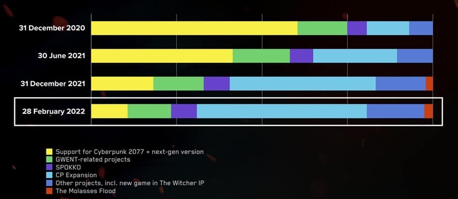 Na dzień 14 kwietnia CDR poinformował o sprzedaży 18 milionów kopii – i zgodnie z prezentacją inwestorską ok. 10% pracuje nadal nad poprawą Cyberpunk2077: