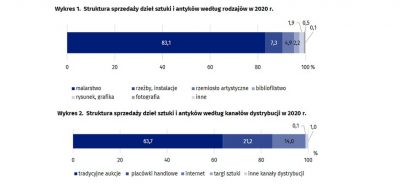 Warto zaznaczyć, że jak wylicza GUS, w 2020 kupowano głównie obrazy, które stanowiły 83,1% łącznej kwoty zysków ze sprzedaży wszystkich dzieł sztuki i antyków.