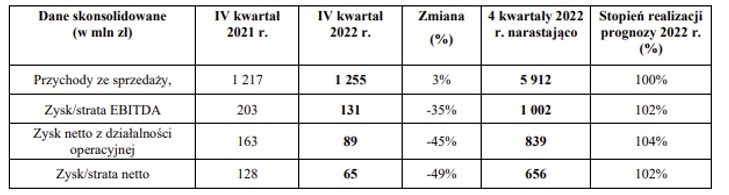Zarząd szacuje, iż zgodnie z przewidywaniami wyniki IV kwartału 2022 roku będą niższe od osiągniętych w analogicznym okresie roku poprzedniego. Trwająca na rynku korekta popytu wynikająca z wysokich stanów magazynowych po stronie odbiorców została pogłębiona przez wysokie koszty energii, rosnącą inflację oraz wysokie stopy procentowe. W przypadku rynku polskiego doprowadziło to do znacznego ograniczenia popytu, w szczególności wśród klientów z branży budowlanej. Słabsza koniunktura spowodowała również presję na marże i ich obniżenie w porównaniu z poprzednimi kwartałami 2022 roku. Rekordowo wysokie wyniki za rok 2022 zostaną zrealizowane głównie dzięki ponadprzeciętnym rentownościom osiąganym w I półroczu 2022 roku na fali ograniczeń i niepewności co do dostępności surowców z powodu wybuchu wojny w Ukrainie.