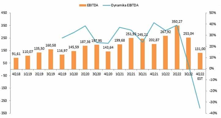 Tak samo mizerny obraz budzi spojrzenie na EBITDA – tutaj również – najniższe poziomy od trzech lat: