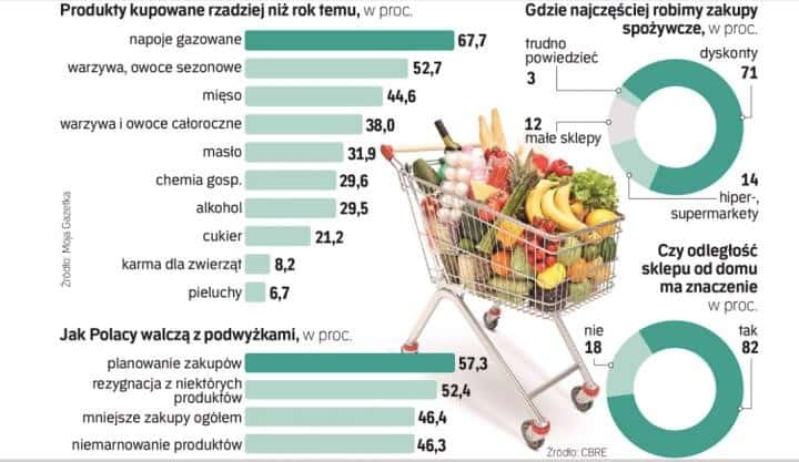 W związku z nagłym wzrostem cen, wielu z nas zaczęło zmniejszać swoje codzienne wydatki. Pod koniec września widoczna była tendencja do oszczędzania na podstawowych produktach. Według badań, które na zlecenie Rzeczpospolitej zrobili twórcy aplikacji Twoja Gazetka, Polacy aż o 67,7 procent mniej zaczęli wydawać na napoje, a oszczędności rzędu 52,7 procenta dotyczyły owoców sezonowych, a także mięsa (44,6 procent) czy masła (31,9 procent). Niemal 50 procent Polaków wskazała, że kupuje znacznie mniej niż kiedyś, a ponad połowa, że po prostu rezygnuje z niektórych produktów.