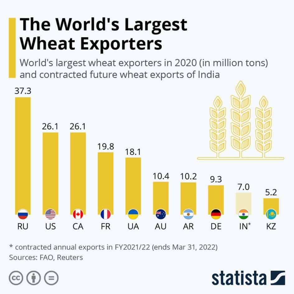 Moją uwagę przykuwa dość „niski” oczekiwany wzrost inflacji cen żywności. Zważywszy na to, że w konflikcie zbrojnie udział biorą państwa bardzo istotne z punktu widzenia produkcji zbóż. Warto przypomnieć, że za rok 2020 Rosja jest największym na świecie eksporterem pszenicy, na piątym miejscu znajduje się jednak Ukraina: