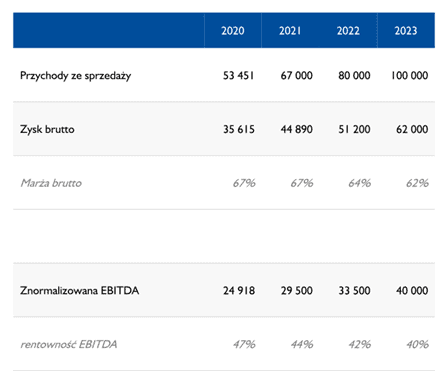 W ostatnim czasie spółka przedstawiła swoją strategię na lata 2021-2026 w której opisuje obszary dalszego rozwoju. Zachęcam do przeczytania strategii, którą znajdziecie w relacjach inwestorskich spółki. Ja skupię się natomiast na zaprezentowanych przez spółkę perspektywach finansowych na lata 2021-2023: