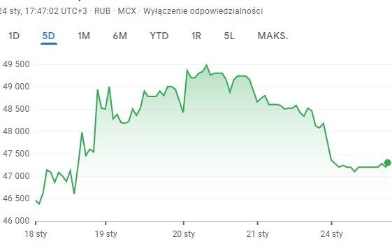 Jak donosi Rzeczpospolita, między 18 a 23 stycznia indeks zmienności, czyli tak zwany „wskaźnik strachu” podskoczył na rosyjskiej giełdzie o 85 procent. Spadki zaczęły się po zakończeniu rozmów Moskwy i NATO oraz konferencji Ministra Spraw Zagranicznych Siergieja Ławrowa z 14 stycznia. Podczas przemówienia, Siergiej Ławrow niemal odrzucił prawdopodobieństwo dalszych negocjacji z Zachodem. Jednak w zeszły piątek w Genewie odbyły się rozmowy z USA, po których Ławrow podkreślił, że Rosja nie zamierza zaatakować Ukrainy. Oświadczenie amerykańskiego sekretarza stanu Antonyego Blinkena było natomiast takie, że w przypadku jakiejkolwiek agresji na Ukrainę, Moskwa musi liczyć się ze zdecydowaną reakcją Zachodu. Na razie nie wiadomo, w co dokładnie gra Rosja, i czy widmo konfliktu jest realne. Pomimo zapewnień Ławrowa, trudno wierzyć w pokojowe rozwiązanie sprawy, zwłaszcza, że w czwartek świat obiegły informacje o rozmieszczeniu przy granicy z Ukrainą nawet 100 tysięcy rosyjskich żołnierzy. Ameryka odpowiedziała deklaracją zwiększenia sił amerykańskich w Polsce i na Ukrainie.