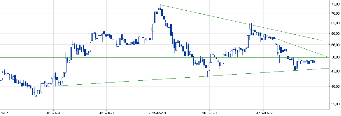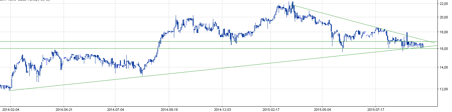 Krótko na temat ogólnej sytuacji: Rynki na całym świecie mniej lub bardziej straciły na wartości na wtorkowej sesji. U naszych zachodnich sąsiadów, Niemców, DAX zanurkował 3,8 % w dół i znalazł się niżej niż w dniu wielkiej paniki wywołanej chińską przeceną, kiedy to m.in. na naszym rynku Bogdanka traciła ponad 20 %. W przypadku DAX dużym ciężarem jest afera wokół Volkswagena, który oznajmił w niedzielę o manipulacjach emisji spalań; spółka traci w ciągu dwóch dni 40 %. Sytuacja u nas wygląda nieco inaczej, bowiem nie wykorzystaliśmy potencjału wzrostowego ostatniej hossy, stąd też do dołka z 24. sierpnia jesteśmy bardziej oddaleni niż Niemcy. Niemniej jednak poziom 2150 pkt na WIG20 padł i indeks mierzyć się będzie z kolejnym istotnym wsparciem – 2100 pkt. Nie można jednoznacznie odpowiedzieć na pytanie, czy obecna sytuacja powinna być traktowana jako okazja. Ewentualne spowolnienie gospodarcze , vide Chiny, sytuacja w Eurolandzie (Grecja czy nawet uchodźcy) oraz nadchodzące wybory – to kluczowe czynniki dla rynku. My staramy się jednak dokonać wszelkich starań, aby przedstawione przez nas spółki odczuły jak najmniej tych zawirowań.