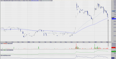 Wykres ukraińskiej spółki CLE jest spekulacyjny, zatem i przedstawiona propozycja zagrania należy do spekulacyjnych. Na ostatniej sesji utworzyła się świeca z krótkim korpusem oraz dłuższym dolnym knotem, a w połączeniu z podwyższonym wolumenem, mamy potencjalną formację młota, która do potwierdzenia potrzebuje wzrostowej świecy na jednej z następnych sesji. Pozytywnie wygląda obrona długoterminowej średniej kroczącej SMA200, ale mamy jeszcze zbyt mało punktów do stwierdzenia, że kurs będzie tą średnią respektował. Spekulanci mogą próbować swoich sił w dowolonym miejscu, ale powinni ulokować SL poniżej dolnego knota. Walor należy do małopłynnych, stąd też wszelkie zaangażowanie należy dokonywać mniejszym kapitałem.