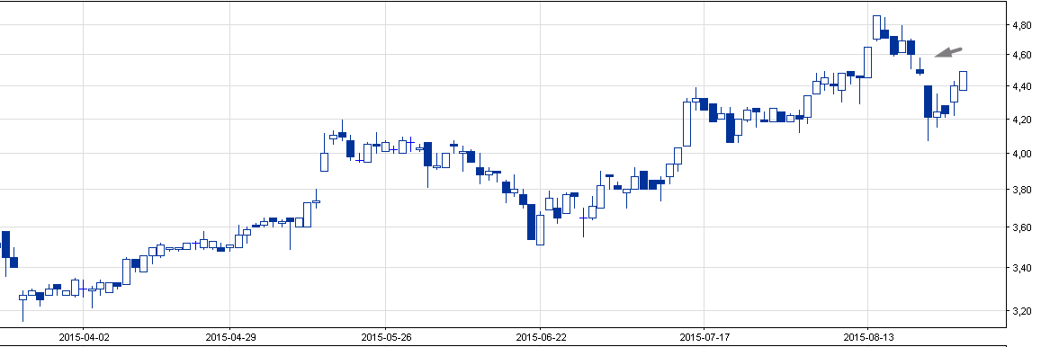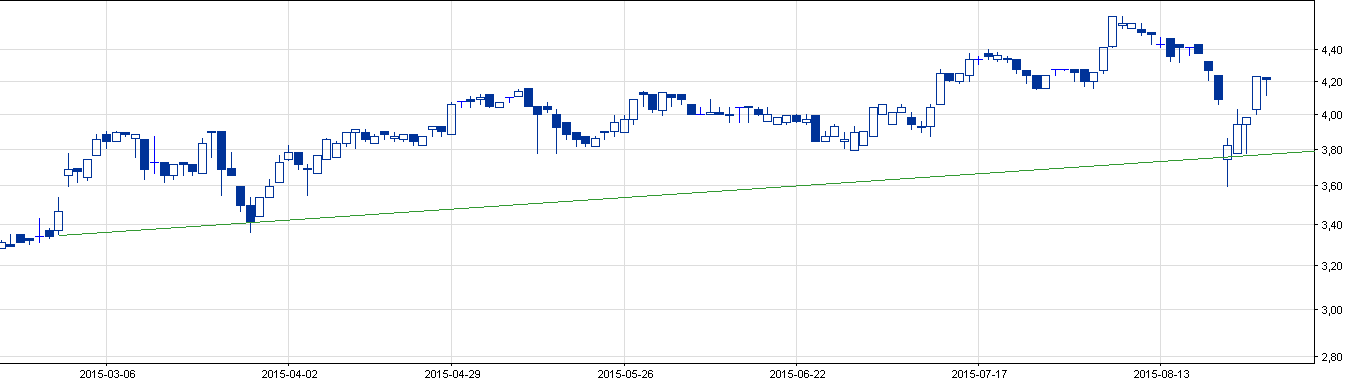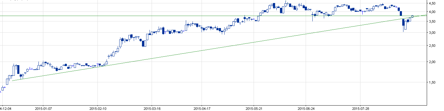 Oprócz przedstawionego przez Michała Presto spojrzymy również na wykres innych spółek, które ostatni, turbulencyjny poniedziałek zakończyły zaskakująco dobrze. W obecnym zestawie spółki oprócz ładnego trendu wzrostowego łączy jedno: domknięcie luki spadkowej, co zwiastować powinno zwiększony popyt na akcje. Trend wzrostowy
