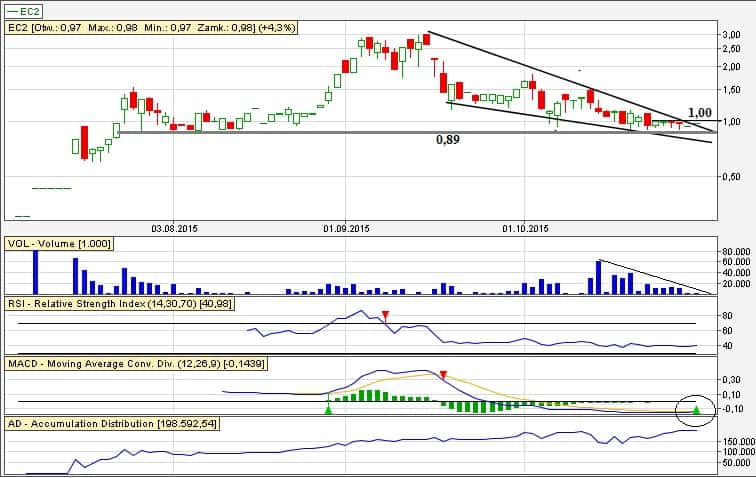 Zagrywka: na przebicie oporu na poziomie 1,00 zł, co da potencjalnie wyjście z formacji