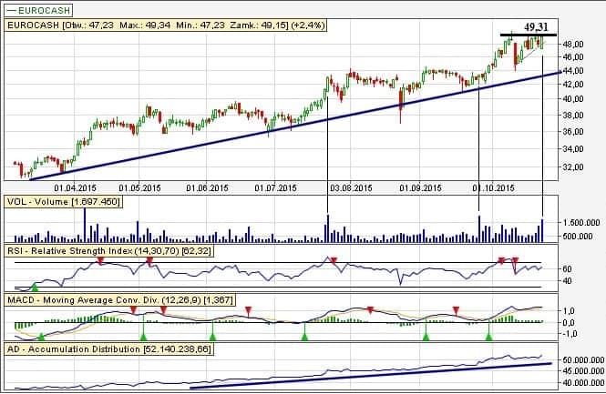 Długoterminowy trend wzrostowy w całej okazałości. Potwierdzony przez wskaźnik AD.