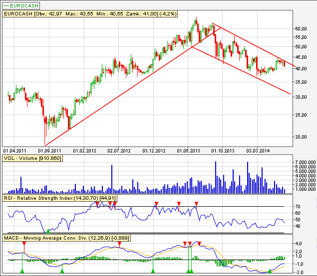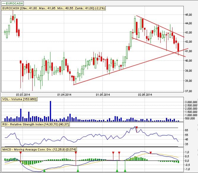 Na pewno ciekawym kąskiem pod względem analizy technicznej jest Eurocash (EUR):