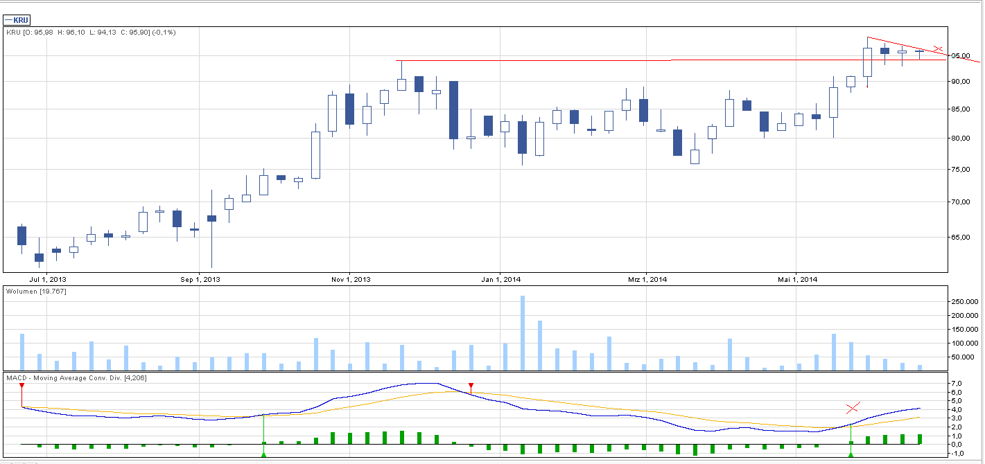 Na wykresie tygodniowym zaznaczyłem punkt, który należy mieć na uwadze i w razie czego łapać. 96,3 zł, to miejsce gdzie należy ustawić limit aktywacji.