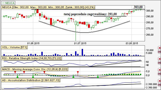 Na shoutboxie już nawiązywaliśmy do Neuca (jako mój typ na najbliższe dni/tygodnie), więc by wypadało wstawić krótką aktualizację. We wpisie z 24.07 zagrywaliśmy z poziomu 291,00 zł (link).