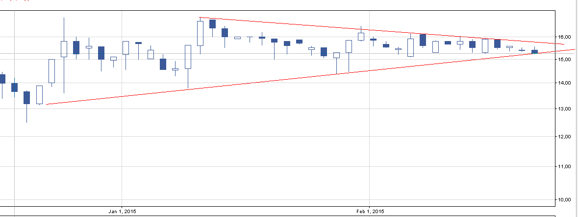 Żeby akcje znowu zaczęły rosnąc kurs musi przebić ważny rejon na 4,24 zł. Lub ze sporym wyprzedzeniem pogrywając na przebicie 3,30 zł. Tworzy nam się klin i kurs musi z niego wyjść.