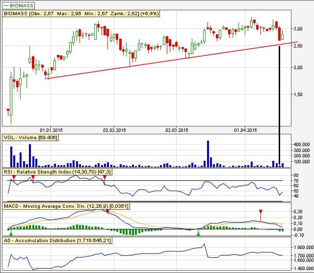 Zaktualizowany wykres spółki Biomass przestawiony został przez Michała tydzień temu.