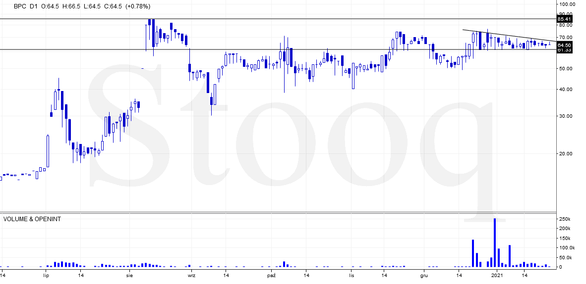 Na koniec dorzucę jeszcze wykres BPC, który wskazuje na ładną konsolidację kursu a patrząc na ostatnie większe wolumeny to może się szykować do wybicia.
