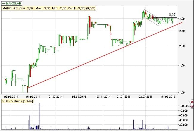 Makolab aktywował limit na wielkim wolumenie, +13,33%. Czekamy teraz na przebicie 3,40 zł.