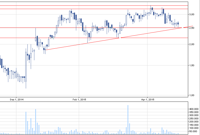 Zaznaczone na wykresie 2,5 uznawałbym za wsparcie, gdzie powinien znajdować się SL. 2,29 to prawdopodobnie następny przystanek jeżeli spółka będzie leciała w dół.