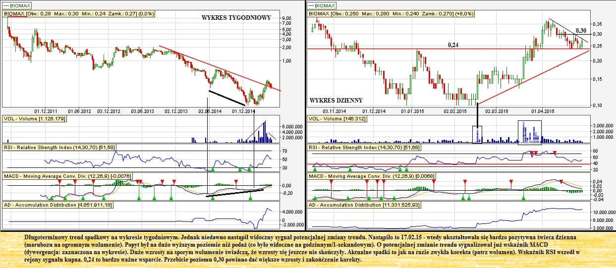 Tworzy nam się w dalszym ciągu trójkąt symetryczny. Potwierdza to układ wolumenu. Mamy do czynienia również z trendem wzrostowym. Zawężający się trójkąt i powolne dobijanie do linii trendu wzrostowego były czynnikami, że spółka trafiła do tego cyklu.