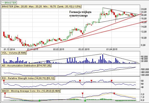 Chciałbym poprosić o komentarz odnośnie obecnej sytuacji na Braster w obliczu emisji akcji po maksymalnej cenie 19 zł i przejścia na GPW. Czego można spodziewać się po kursie? Czy po dzisiejszej sesji formacja techniczna jest nadal aktualna? Przyznam, że kupiłem Braster jakiś czas temu po 20 zł i zastanawiam się jaki może być dalszy obrót sytuacji i od jakiego momentu formający się trójkąt przestanie obowiązywać gdyby kurs obrał dolny kierunek.