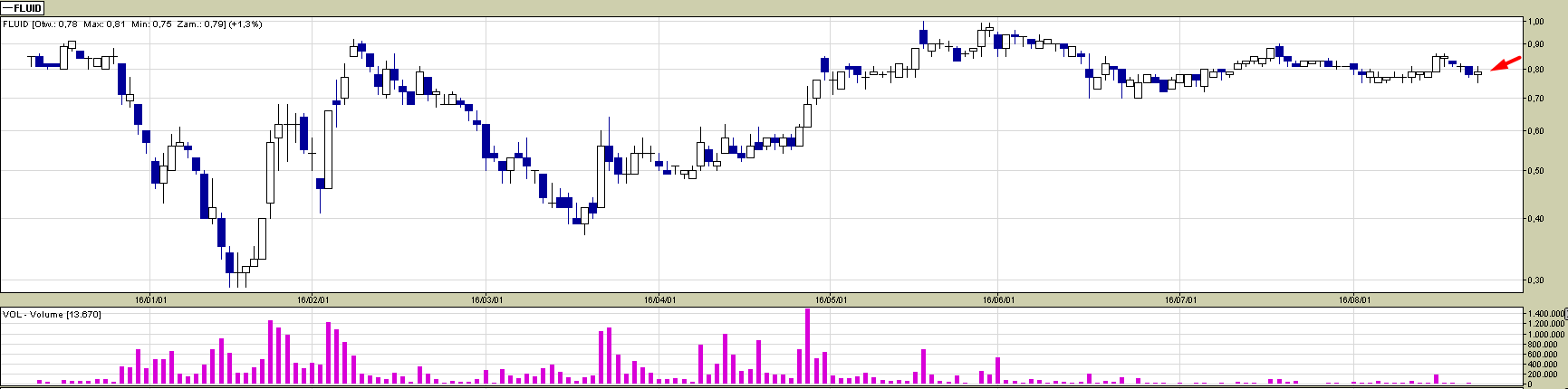 Fluid mocno walczy o trzymanie wsparcia na 75 gr. Czy spekulanci próbują swoich sił na wsparciu? Kolejne widoczne jest na 70gr.