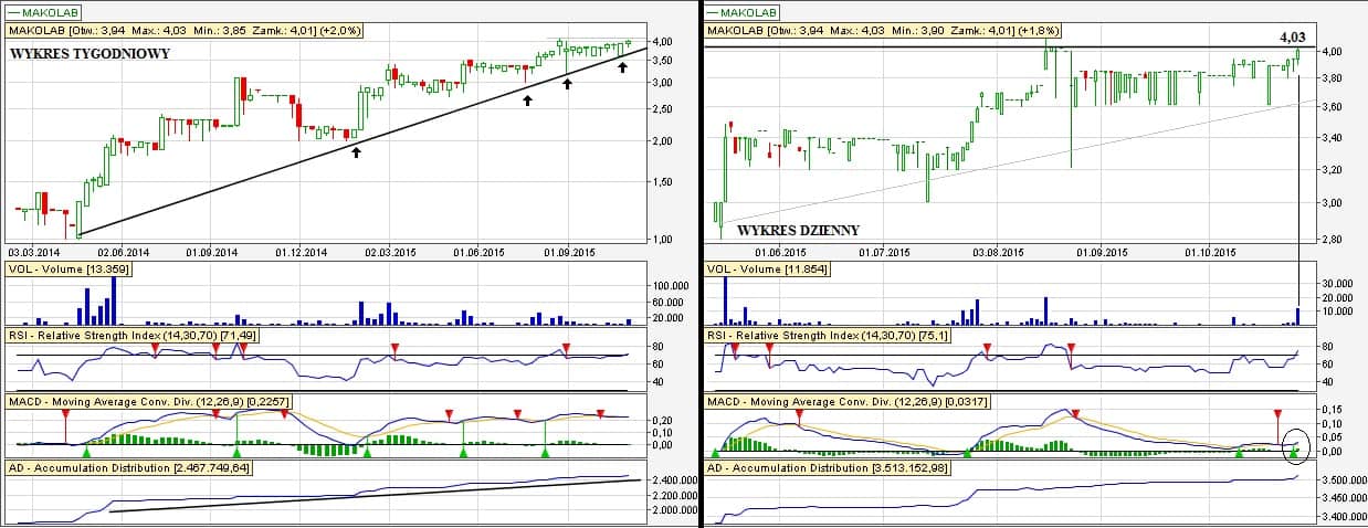 Mamy tutaj długoterminowy, 6-letni trend wzrostowy. Spółka również była jedną z naszych fundamentalnych spółek w ostatnim Tygodniu Fundamentalnym. Zagrywamy na przebicie ostatniej świecy i przy tym linii oporu na poziomie 4,03 zł. Bardzo przykuwa uwagę dzisiejszy wolumen.