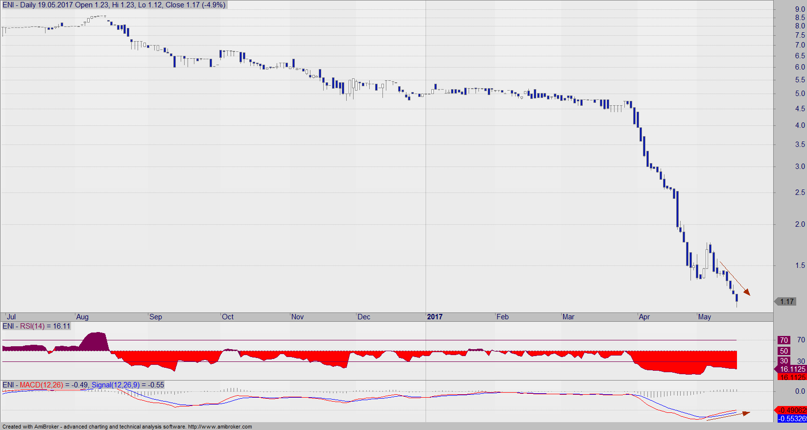 RSI na bardzo niskim poziomie oraz dywergencja na wskaźniku MACD – czekamy aż rynek się uspokoi i zacznie się ruch w górę.