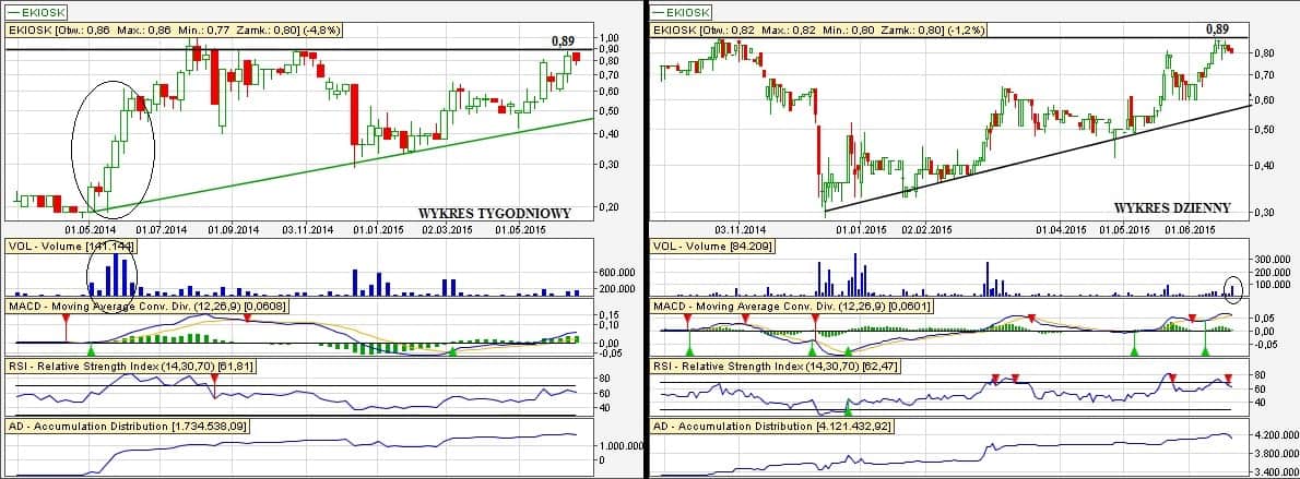 Kolejna i ostatnia spółka z New Connect w trendzie wzrostowym (od początku notowań). Tutaj zagrywamy w głównej mierze pod bardzo pozytywną świecę utworzoną na ostatniej sesji. Na tej sesji rónież utworzył się jeden z największych wolumenów w historii tego waloru. Dość mocnym oporem jest rejon 12,00 zł. Jednak cena jednej akcjo aktualnie wynosi 10,20 zł, więc czekanie na przebicie tego poziomu mija się z celem. Tutaj można zagrywać po dobrym starcie sesji.