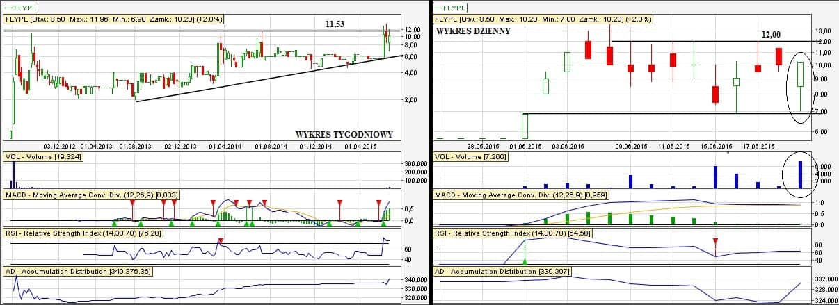 FlyPL dalej posiadam po 9,51 zł. Ustawia się wsparcie w rejonach 10,00 – 10,20 zł. Nie ustawiam Stop Loss’a (jest pod stałą obserwacją), ale przebijając wyżej wymienione wsparcie sprzedaję od razu.