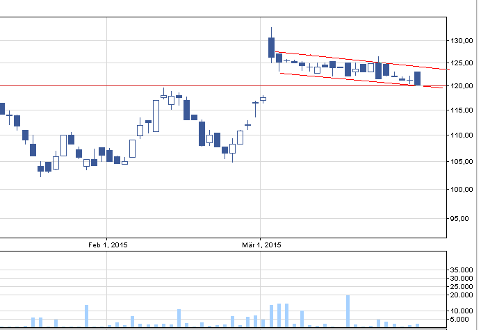 Kurs spółki znajduje się w porządnym trendzie wzrostowym, a od niedawna dochodzi do tzw. domykania luki cenowej. Ponadto kurs porusza się w jako takim wąskim kanale spadkowym, pod który można ew. zagrywać. Widoczne wsparcie na okrągłych 120 zł, chociaż dopuszczalne jest jeszcze małe zejście do 117 zł w celu pełnego domknięcia. Możliwe wejście to okolice 125 zł.