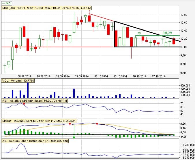 MCI wybiło z trójkąta. Jaki obstawiacie TP? Pierwszy opór 10,50, kolejny ~10,80.