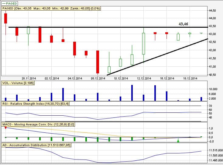 Kolejna spółka z tego tygodnia. Na wykresie nic się nie zmieniło i w dalszym ciągu jest aktualny proponowany LimAkt z poprzedniego wpisu (analiza techniczna Paged 17.12.2014):