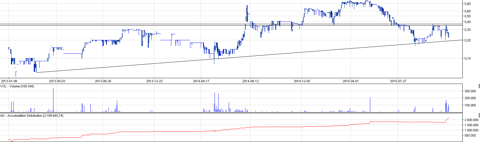 I trzecia spółka z mocno rosnącym AD. Streszczę się zatem tylko do sposobu zagrywki: spekulacyjnie na utrzymanie 90 gr bądź bezpieczniej z LimAkt na 1,1 zł.
