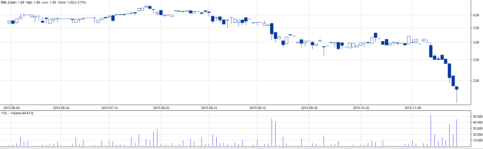 Drugą opcją na spekulacyjne zagranie jest Biomedlub, który ostatnimi dniami bardzo mocno zniżkował. Na czwartkowej sesji doszło do utworzenia świecy młot. Świeca ta nie utworzyła się jednak na ponadprzeciętnym obrocie, ale znajduje się na historycznym dnie, co wyrównuje szanse ew. realizacji formacji.