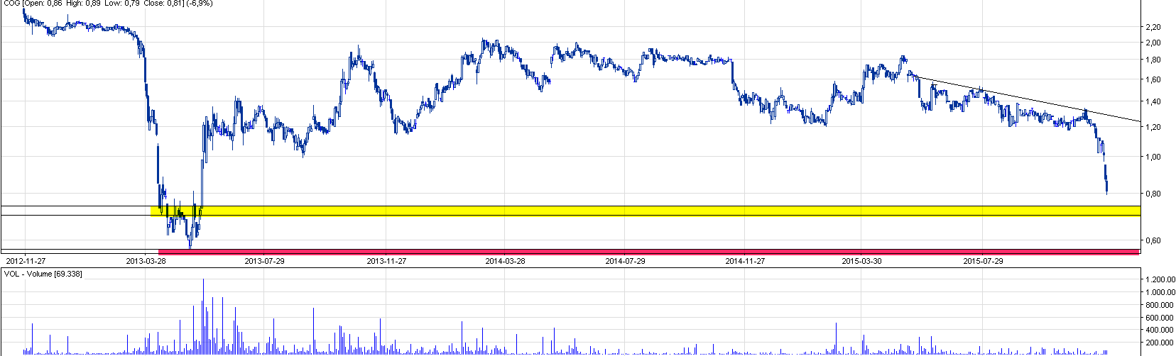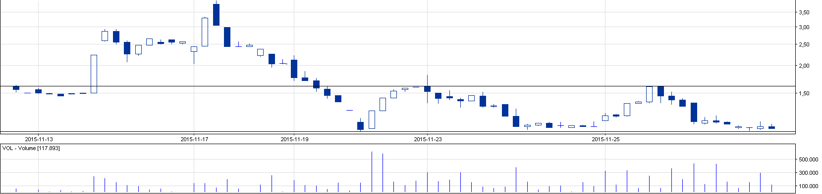 Podstawowy wniosek, jaki nasuwa się patrząc na wykres to próba utworzenia średniej długości konsolidacja w obszarze 1 zł – 1,6 zł. Oczywiste jest, że przebicie się przez złotówkowe wsparcie wywoła panikę, która zostanie zatrzymana przez automat zleceń, który mniej lub bardziej steruje kursem albo doprowadzi do głębokiego nurkowania kursu. Optymistyczny wariant zakłada odbicie się od 1 zł i kontynuację ruchu w wyznaczonym obszarze.