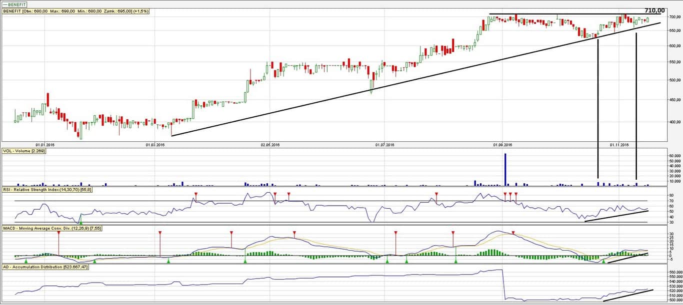 Krótko i rzeczowo: przedstawiamy formację trójkąta zwyżkującego na spółce Benefit.